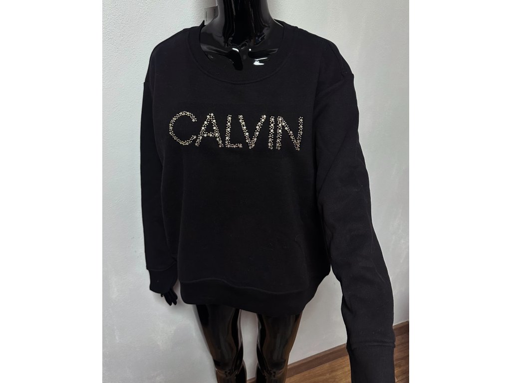 Dámská mikina CALVIN KLEINvel. L - délka 64 cm, prsa 63 - 70 x 2 cm (obleče i XL)nápis zlaté cvočky a zlaté kamínky
