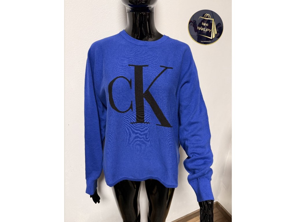 Krásně modrý svetřík CALVIN KLEINnový, s visačkounetopýří střihvel. M - délka 63 cm, prsa cca 64 x 2 cm100 % bavlna