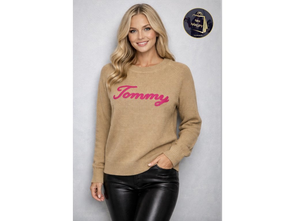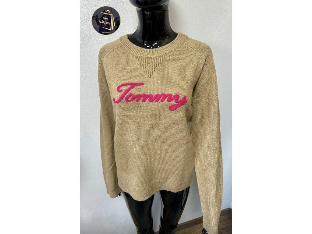 Dámský svetr TOMMY HILFIGERnový, s visačkouvel. L - délka 65 cm, prsa 59 - 70 x 2 cm, délka rukávu od krku 75 cmrůžové vyšívané logologo - vlaječka na rukávu